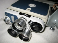 Kamera hatte einen Federwerkantrieb, drei Optiken