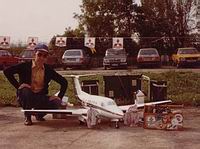 und mit viel Geduld gebaut hat und die er sehr erfolgreich fliegerisch