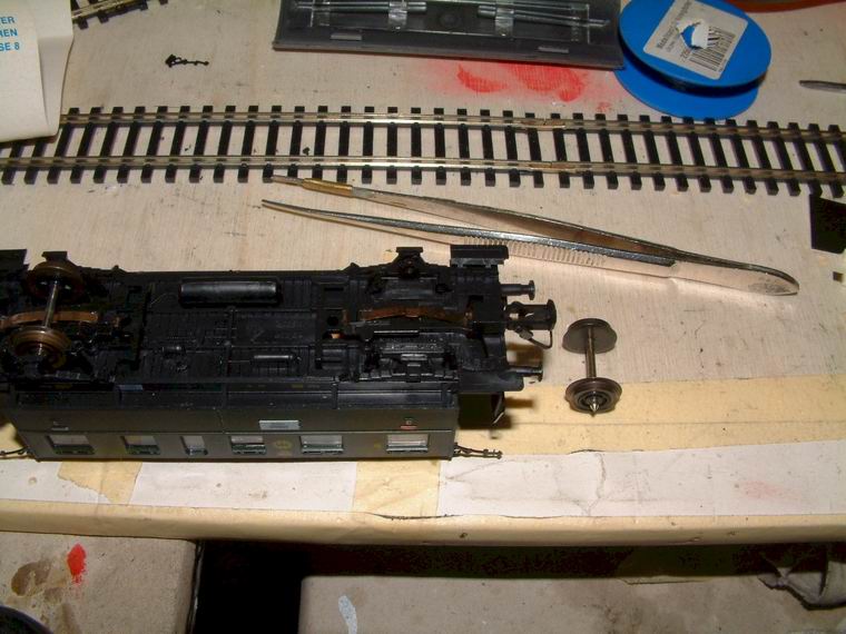 werden. Nachdem es auch an Kontakt anden Rädern mangelte wurden diese mit Waschbenzin und Wattestäbchen