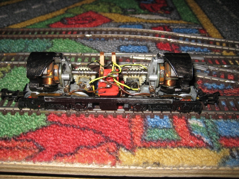 dunkelbraun gestrichen Stromab- nehmer wurden montiert. Um die Lok