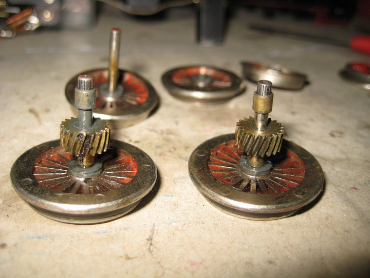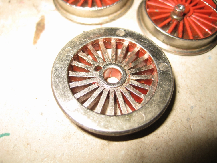 die Radscheiben im Messingbuchsen befestigt, sodass