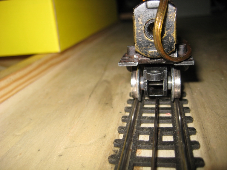 der Lok ein Schleifkontakt probeweise montiert, der