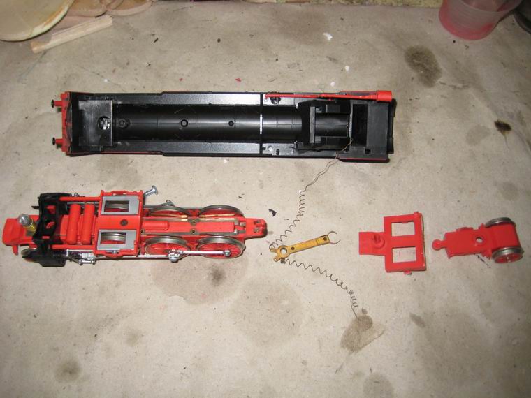 Nun erfolgte die Zerlegung der Lok, denn ich