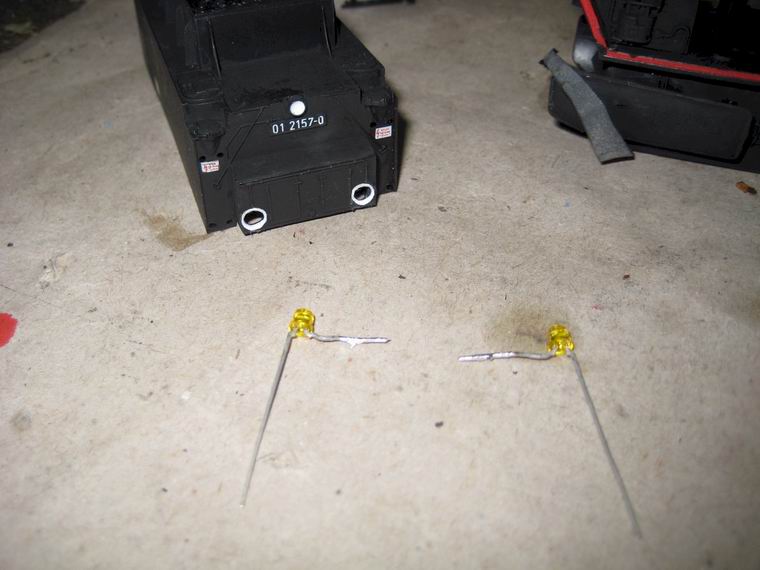 Tenderscheinwerfern zart eingeklebt und verdrahtet.