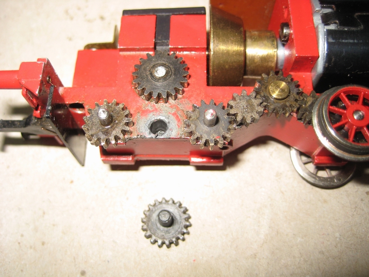 das mittlere Zahnrad mit der kurzen Achse hatte schoin