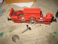 Reinigung der Lok. Die Feldspule und der Umschalter wurden entfernt. Nach Einlangen des Hamomagneten kann