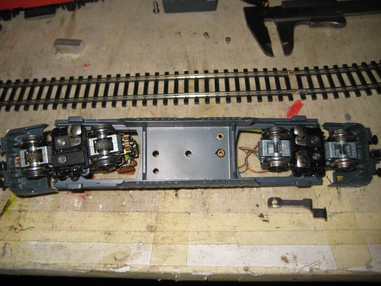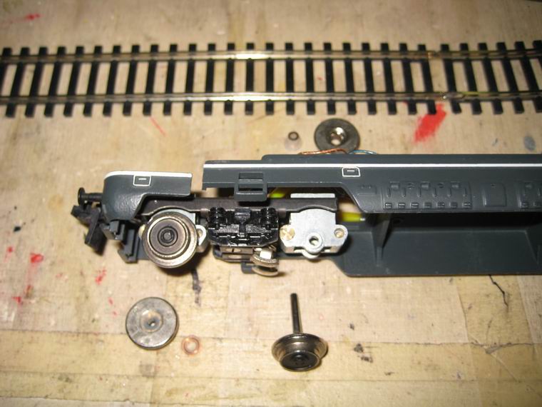 V200 von Trix Express für Betrieb auf Normalgleisen umgebaut
