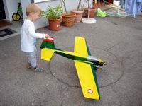 mit einem Modellflugzeug |