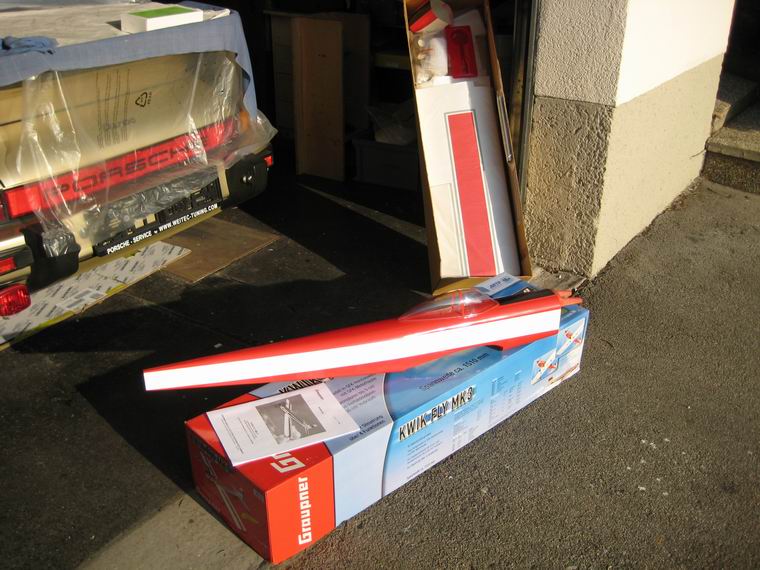 Die gelieferten fertig gebauten Bauteile Rumpf, Flügel,