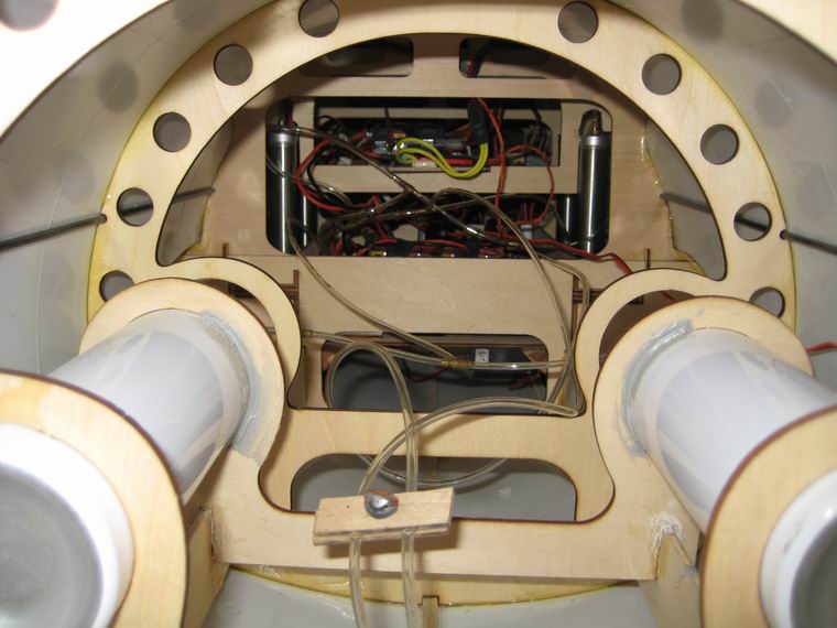 Rumpf am Servobrett montiert. Das Akkubrett