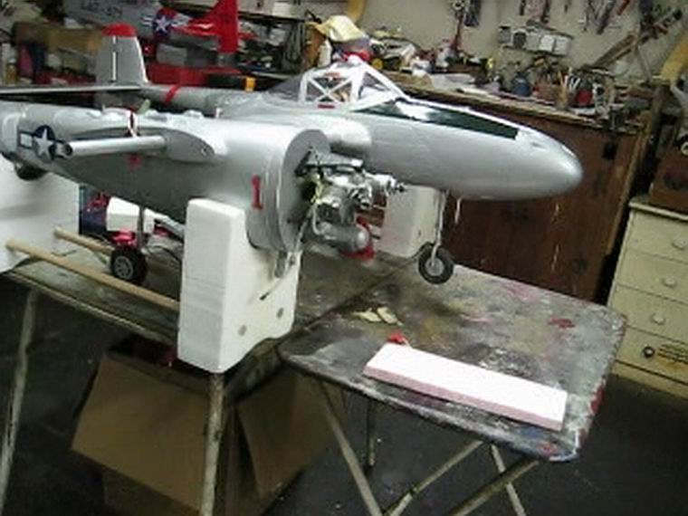 Einziehfahrwerk und zwei SY 46er-Motoren (je 7,4ccm) stellt das Modell schon etwas dar.