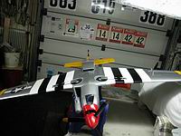 mit Nachklebungen be- dacht. Ebenso wurden an den Rippen an denen die Fahrwerksbefestigungen