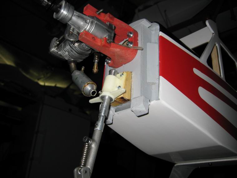 Hartholzblock unter dem Motorträger aufkleben um eine Schrägstellung des Fahrwerksbeines zu ermöglichen. Um die notwendige Baulänge des