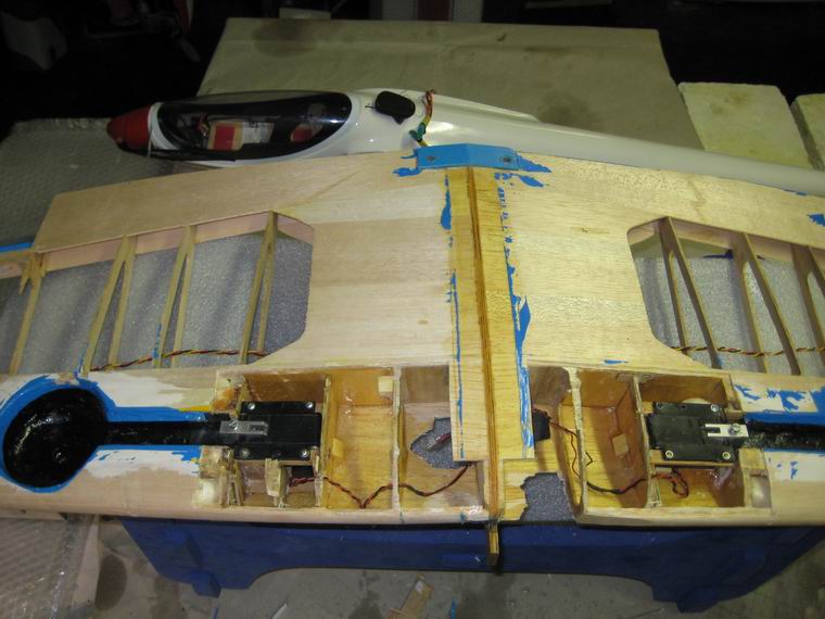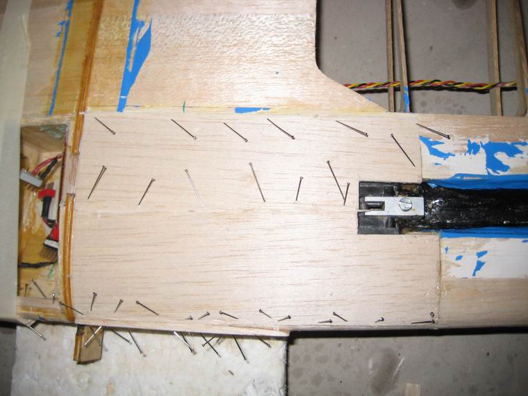PVH-Leim-Klebestellen am Flügel wurder der Rumpf in