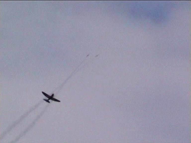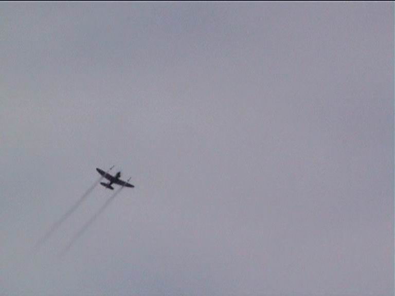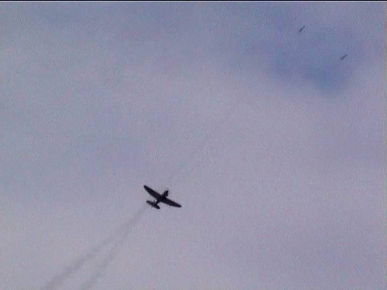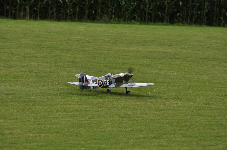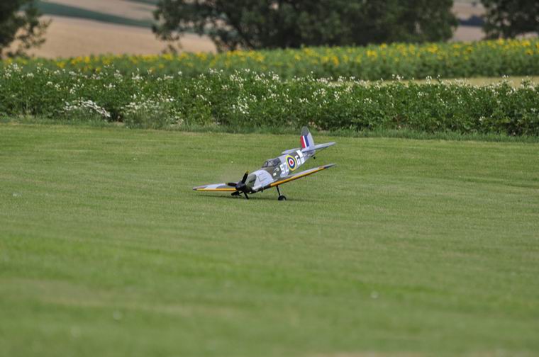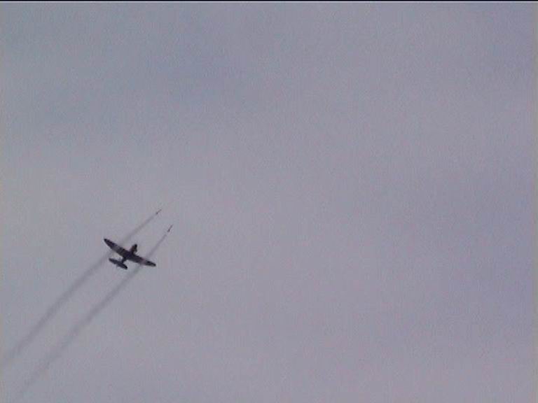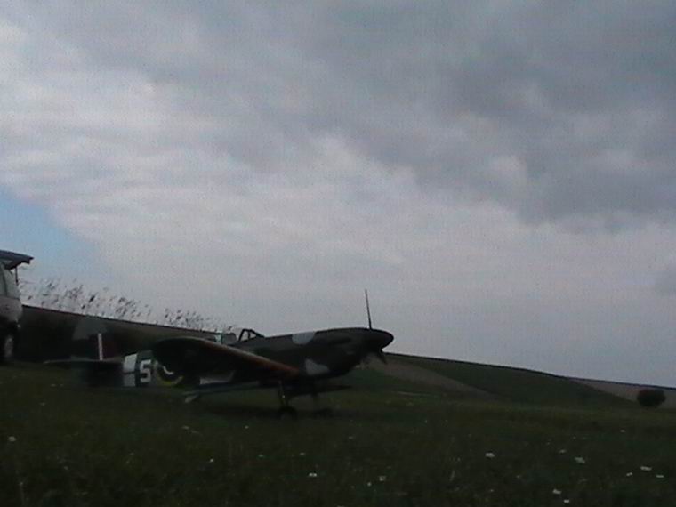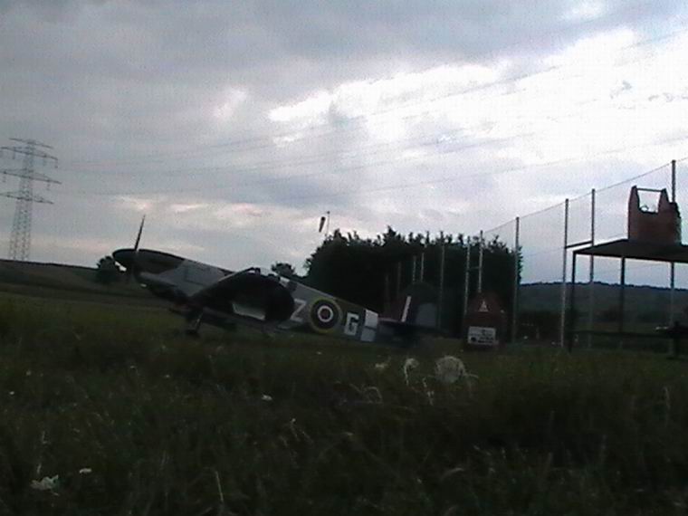 nach der Landung. Beim zweiten Flug mit der Spifire kam