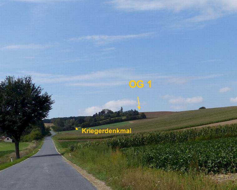 Obergänserndorf 1 (OG 1). Der Hang hat etwa eine Überhöhung von ca.90 m über den davor liegenden, flacheren