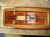 Besonders der mit Sperrholzstreifen beplankte Holzrumpf