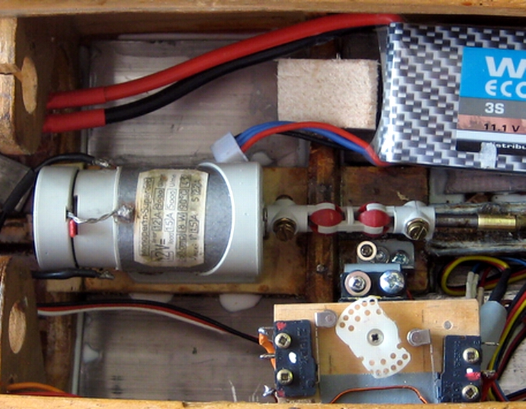 3Bl-50-M4, Wellenkupplung Marx-Doppelkardan 2mm/4mm, Antriebsakku: Lipo 3S 2500, Regler: Tamiya TBLE-02S Fernsteuerung Varioprop 12