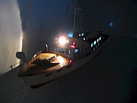 Boot schwimmt und ist beleuchtet |