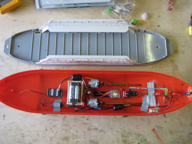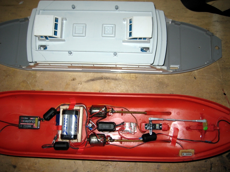 somit ist der Einbau des Akkus, Reglers, Empfängers und eines Steuerruderservos samt Rudermechanik