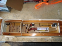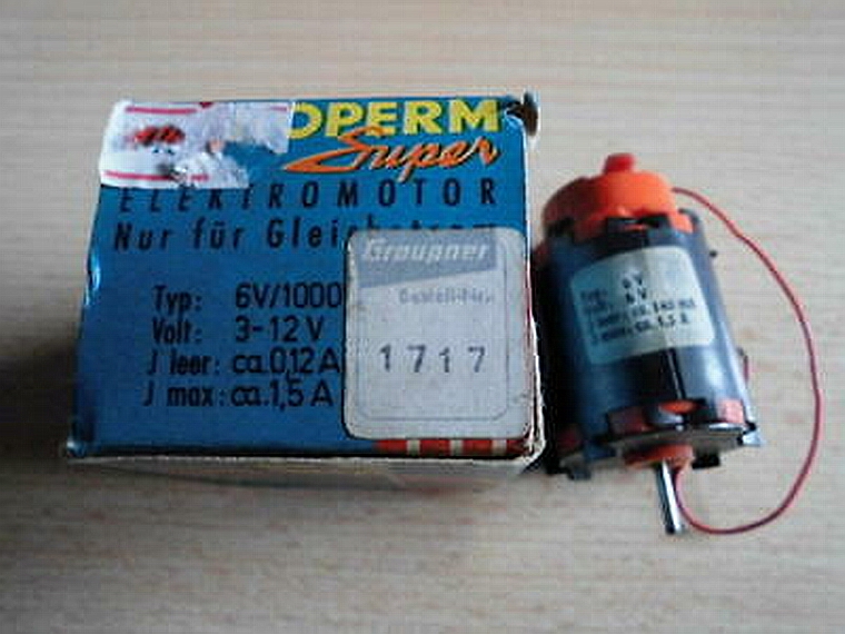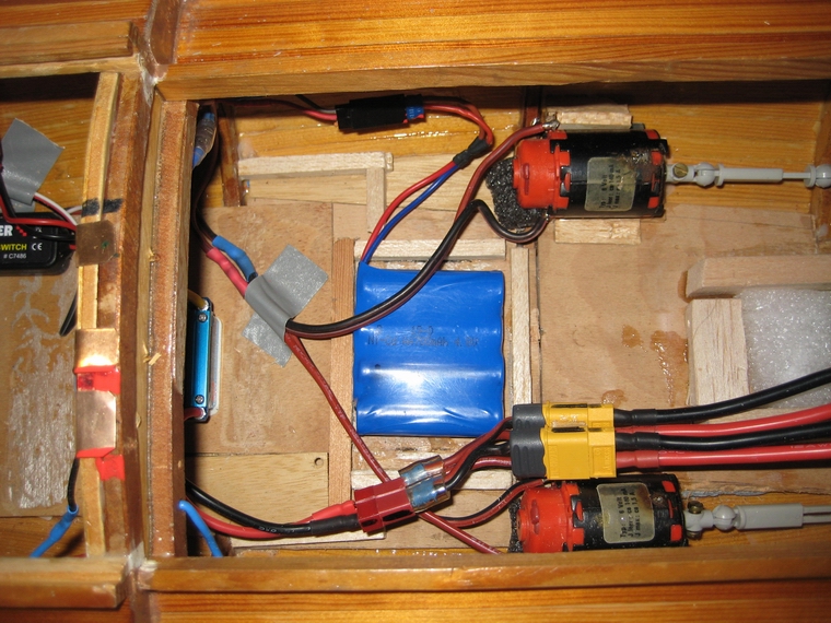 beiden alten Monoperm 6V Motore (orange) nur 2S Lipo Akkus verwendet. Im Schiff war eine magere