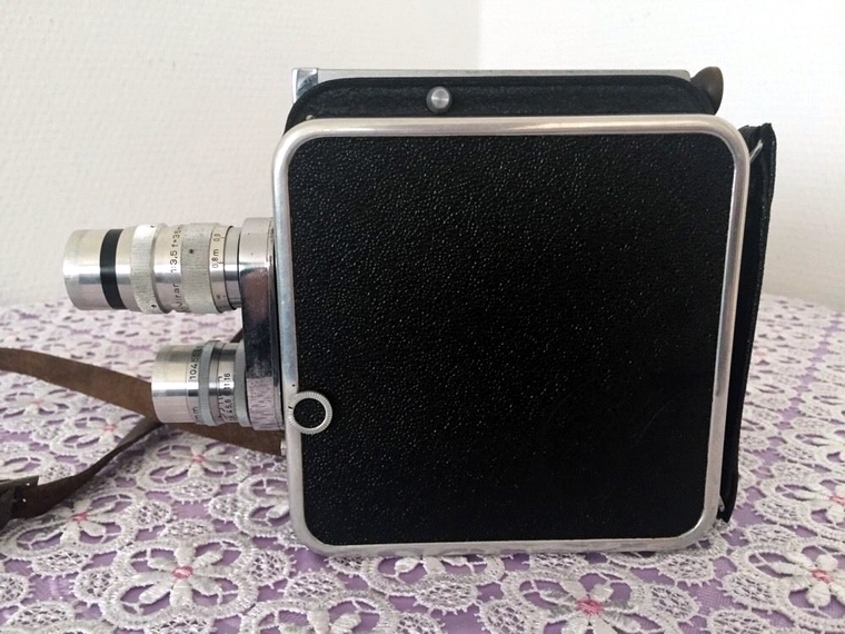 Kamera hatte einen Federwerkantrieb, drei Optiken
