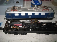 141 211-3 von Hamo. Das Metall- fahrgestell könnte in der Breite in das 1014-Roco-Gehäuse gut passen, doch war zu klären, ob die Länge das Fahrgestells