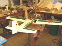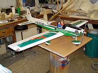 reichlich Gewicht zu- sammen. Der Umbau des Höhenleitwerks in halber Leitwerkshöhe, wäre bei diesem Rumpfmaterial nahezu unmöglich gewesen, sodaß ich darauf verzichtet habe. Mein Modell war mit einem HP
