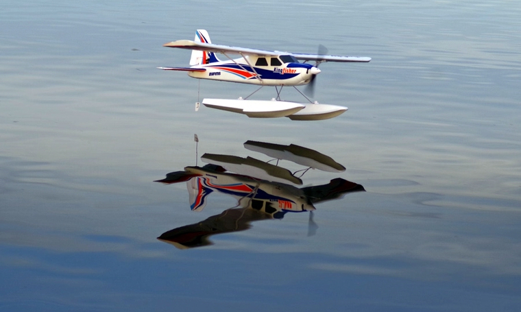 Modell versuchs- weise mit Schwimmern zu fliegen. Aus den
