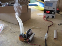der Heizer mit einem 12 Ohm-Vorwiderstand angeschlossen,
