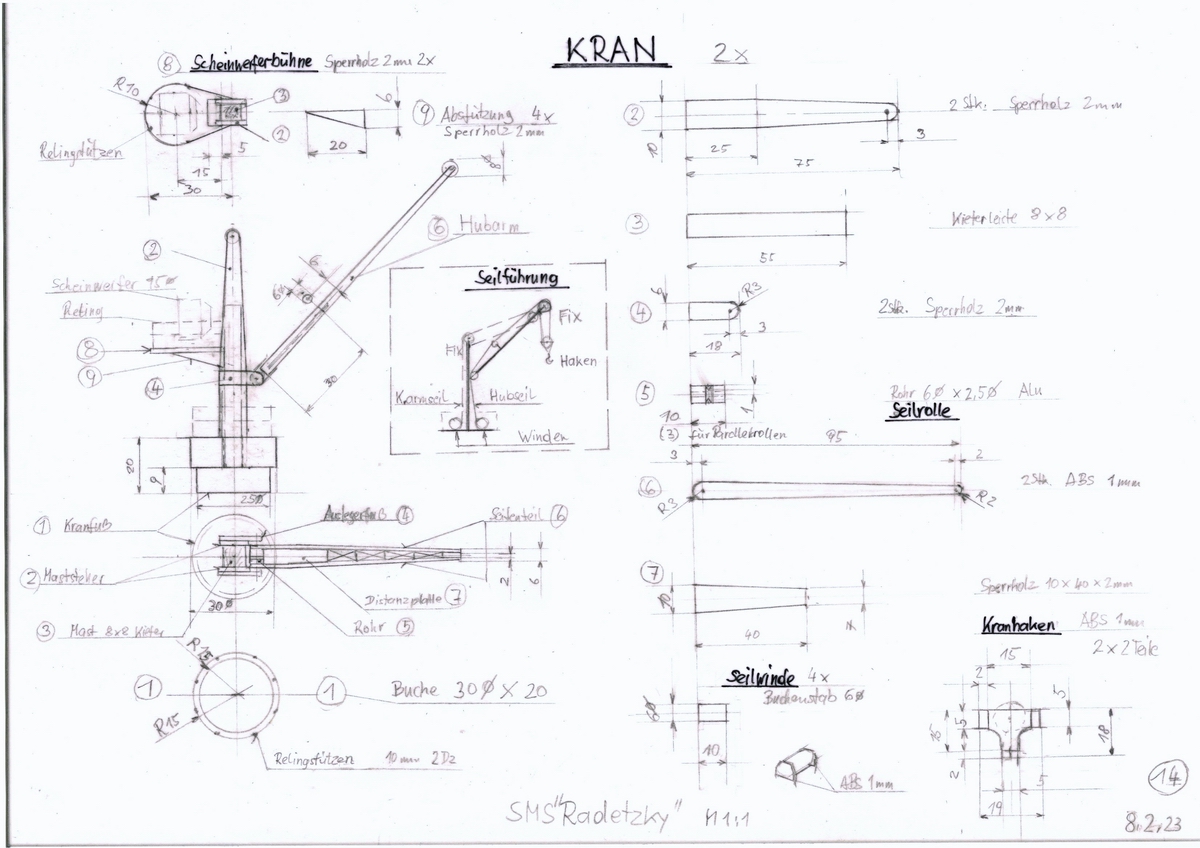 gezeigten Spantenriss. Von den Bauteilbildern gibt es