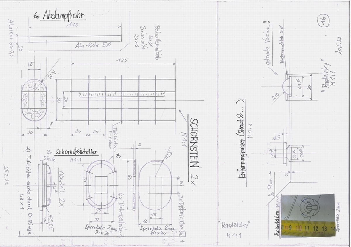 Bauteile am Papier und danach am Werkstoff. Durch die Vergrößerung ergaben