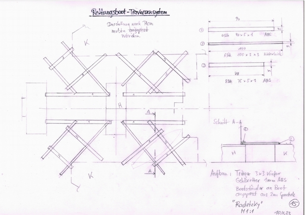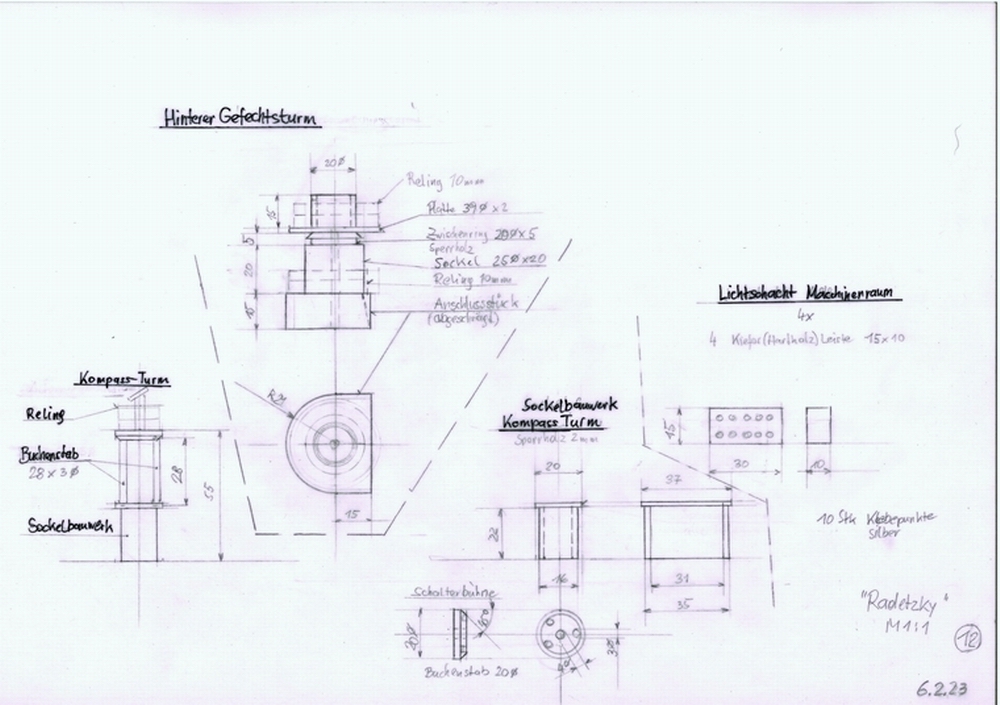gezeigten Spantenriss. Von den Bauteilbildern gibt es